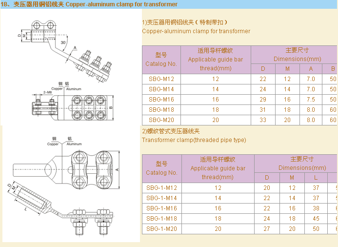 變壓器用銅鋁線夾(SBG、SBG-1) Copper-aluminum clamp for transformer