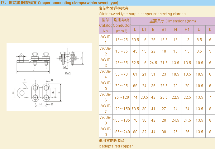 產(chǎn)品詳細(xì): 梅花型銅接線夾(WCJB) Copper connecting clamps(wintersweet type)