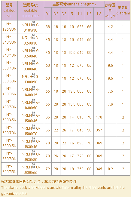 耐熱鋁合金絞線用耐張線夾(液壓) strain clamps for heat-resistant aluminum alloy stranded conductor (hydraulic type)