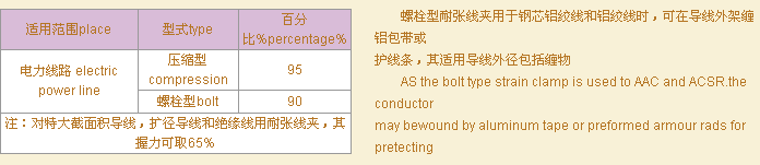 螺栓型耐張線夾的曲率半徑補小于被安裝導(dǎo)線直徑的8倍。耐張線夾導(dǎo)線的最小握力與導(dǎo)線計算拉斷力的百分比如下表: