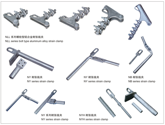 Strain clamps are used to fix condcutor and ground wire through insulators or link fitting to tower arms or substation structures.in according to the clamps