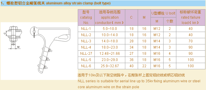 耐張線夾主要用于架空電力線路或變電所固定導(dǎo)線和避雷線,并通過連接金具與耐張絕緣子相連,或?qū)⒈芾拙€與杠塔相連。按結(jié)構(gòu)安裝方式的不同分為螺栓式、