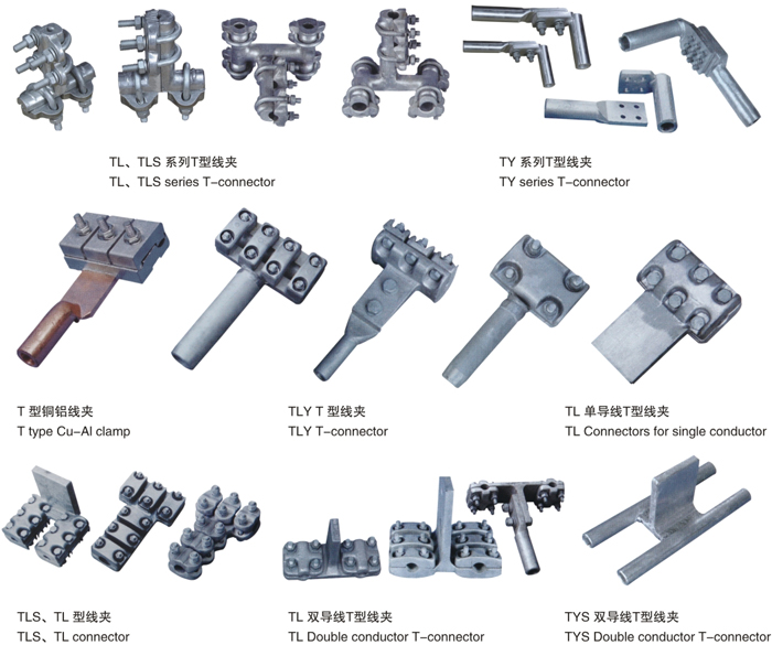 T-connector are used to connect tap conductor with bus line the way of tee joint on overhead transmission lines or substations.The connectors include bolt type and compression type.actually.parallel groove clamp also can be used as T-connector for conductor of small size.
