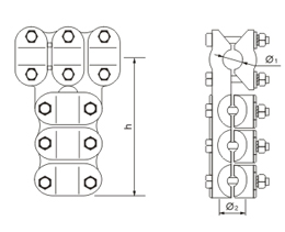 T型線夾主要用于架空電力線路或變電所,在母線的干線上以"T"型方式引下電流分支。分螺栓型和縮型兩類,對于小截面導(dǎo)線也可用并溝線夾或鉗壓橢圓執(zhí)著線管作為T型連接。