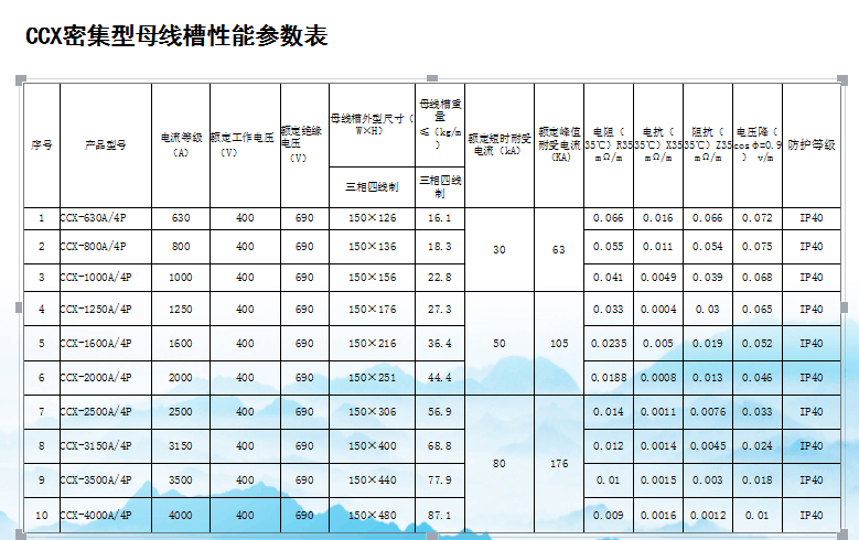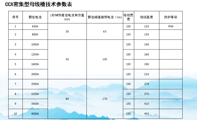 ?CCX母線槽系統(tǒng)內(nèi)部采用典型的“三明志”結(jié)構(gòu),主要由鋁合金外殼、導(dǎo)體(銅)、絕緣材料、堅固件和連接部件組成,是一種靈活可靠的配電系統(tǒng),設(shè)計合理,其相與相之間緊貼的結(jié)構(gòu),性能優(yōu)越,具有穩(wěn)定可靠,配電效能高,散熱好,電壓降低,耐機械沖擊和安裝簡便等特點,電流從600A~4000A,能滿足不同用戶群的配電需求。母線槽外形尺寸緊湊,安裝體積小,杜絕了發(fā)生火災(zāi)時母線槽煙囪效應(yīng) 。外殼采用優(yōu)質(zhì)的鋁鎂合金,必要時可作為接地導(dǎo)線。導(dǎo)體表面鍍錫,既降低接觸電阻,也可提高母排載流量。CCX母線槽系統(tǒng)擁有四線制和五線制兩種配電置。