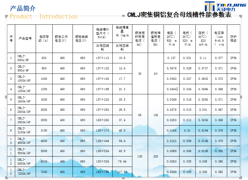 2、載流能力高,導(dǎo)體采用優(yōu)質(zhì)銅鋁復(fù)合排,截面選取比銅排大一個(gè)標(biāo)準(zhǔn)規(guī)格,型式試驗(yàn)結(jié)果,溫升比銅排母線槽低5-7K,非磁性的鋁合金外殼不產(chǎn)生渦流,因而,整體載流能力提高。
